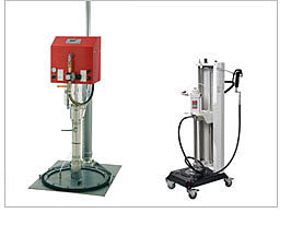 | Single & twin post rams (drum pump lifts/ inductors) For applications pumping from drums or pails, pumps can be mounted onto a Hydrair pneumatic ram. - The ram forces down the follower plate to ensure a constant feed of material to the pump inlet.